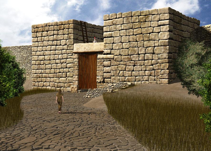 El hallazgo de sendas quicialeras en la zona más externa de las torres indica que la puerta estaba compuesta por dos hojas de madera de 1.5 m. de anchura cada una, por lo que se puede suponer una altura de unos 4 m; al interior, a unos 14 m., se ha documentado la presencia de una contrapuerta, también de dos hojas de madera, con sus correspondientes quicialeras. El paso de entrada entre las dos torres estaba acondicionado para el tráfico rodado y contaba con dos acerados que permitían el paso de los peatones sin ser molestados por carruajes y caballerías.