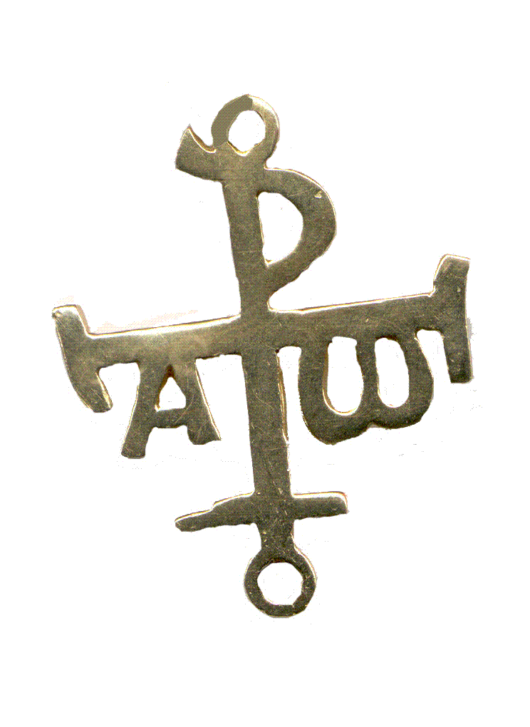 “Dentro de un antiguo sepulcro hallaron aquellos (unos trabajadores) una cruz de metal fundido, que mide 34 centímetros de alta por 25 centímetros de anchura en los brazos: tiene pendientes de estos el alfa y la omega, primera y última letras del alfabeto griego, anagrama del nombre de Jesucristo, principio y fin de todas las cosas. La parte inferior forma la cabeza de un áncora con su asa y su travesaño, teniendo al final de los brazos unos remates que asemejan las uñas de aquella. El áncora era emblema muy usado en los sepulcros de los primitivos cristianos, como puede verse en la obra La Roma Sotterranea Cristiana, de G. B. de Rossi.