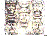 El Sr. D. Francisco Piferrer ha publicado, en su conocida obra heráldica, otro escudo de Baena, sin decir de dónde lo tomó, y nosotros al examinarlo nos hallamos también en el caso de poner en duda la autenticidad de sus origen, pues aparte de que son cinco cabezas de reyes moros con coronas antiguas las que presenta, están colocadas de modo, que apartándose libremente de las citadas leyes heráldicas y de su rigidez y seriedad, se asemeja más el escudo a un cuadro donde el pintor ha compuesto y distribuido el color a su capricho. Efectivamente, cada turbante tiene un color variado, verde, oro, rojo, morado y blanco y azul: cuatro cabezas se miran de dos en dos y la del centro está colocada de frente, detalles todos que no estando fundados en principios heráldicos, ni justificados por explicación alguna histórica, nos hace considerar el tal escudo como caprichosa invención de sus autor (grabado núm. 21).